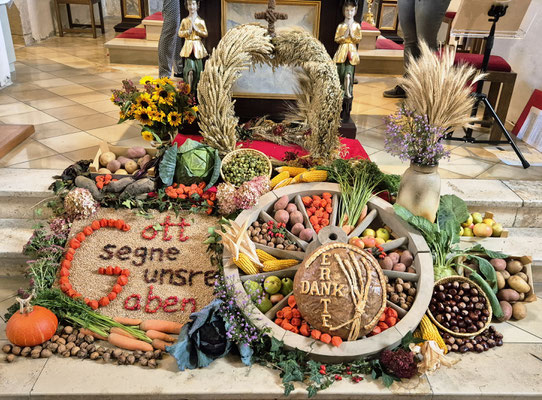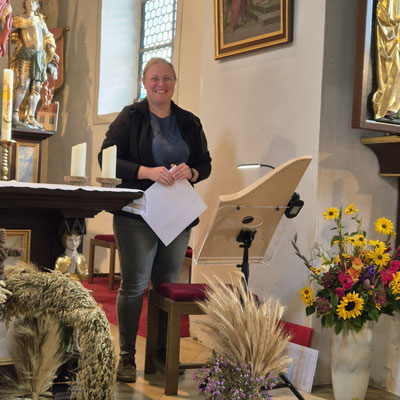 33 Frauen haben an der Brotmeditation bei der Erntedankandacht teilgenommen. Beim anschließenden Umtrunk wurde noch der ein oder andere Wein verkostet und ein kleines, deftiges Buffet genossen.