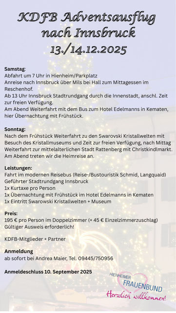 Da das neue Jahresprogramm erst von der neuen Vorstandschaft erstellt wird, bat Elisabeth Ullinger alle Anwesenden um Anregungen und Wünsche für das kommende Jahr. "Aber auch für Kritik sind wir immer offen", so Elisabeth Ullinger.