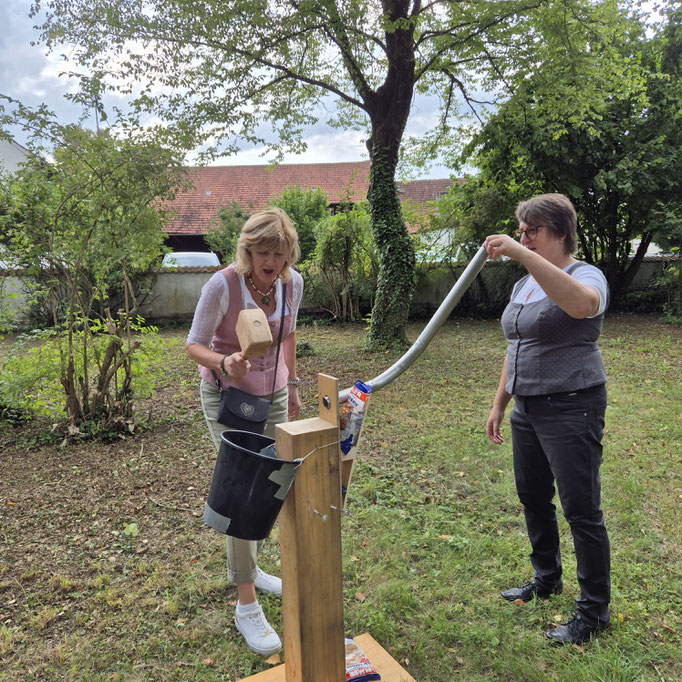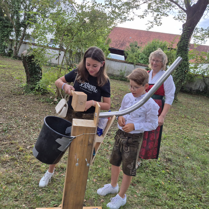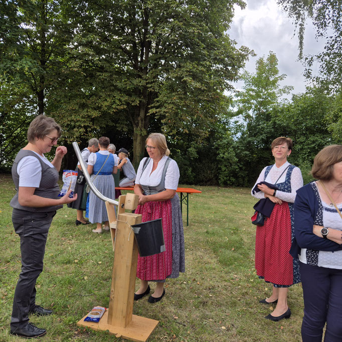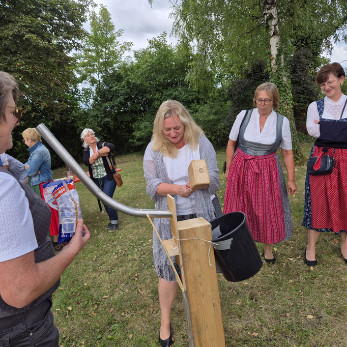 40 Frauen sind der Einladung zum diesjährigen Sommerfest "Nacht in Tracht" gefolgt und haben sich zuerst im Pfarrgarten im bayerischen Dreikampf einigen Spielen gestellt.