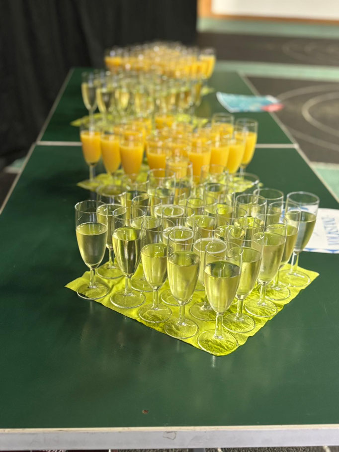 Als Willkommensgruß zum Pfarrfamilienabend hat der KDFB die Hienheimer Pfarrgemeinde mit Sekt und Orangensaft empfangen