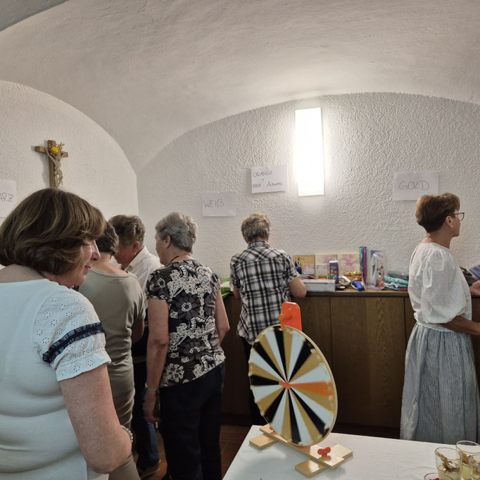 Weiter gings im Pfarrheim mit einem hervorragenden bayerischen Buffet und im Anschluss an ein leckeres Nachspeisenbuffet wurde am Glücksrad noch der ein oder andere Hauptgewinn gedreht.